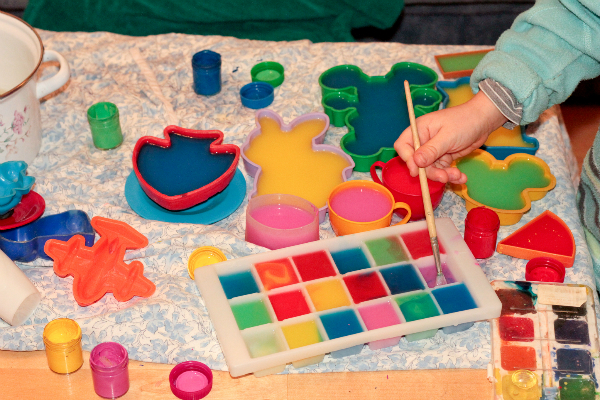 Кстати, обратите внимание, что те формочки, которые сами не стоят я укрепила на игрушечные тарелочки пластилином