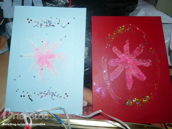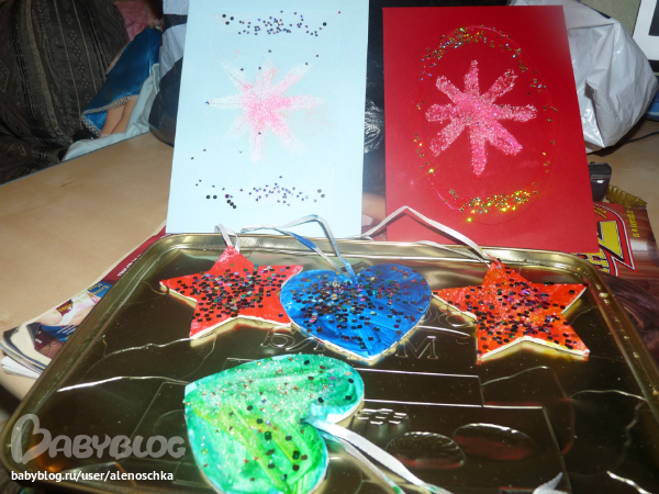 День 9: Сделай подарки своим воспитателям. Мы решили сделать открытки и по новогодней игрушке.