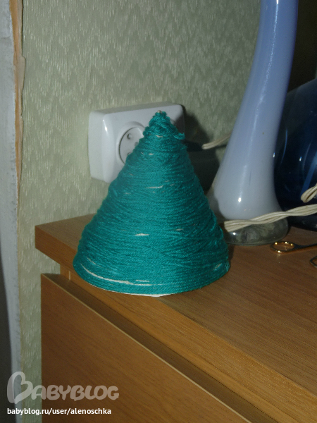 День6: Сделай елочку из клея и ниток (потом еще украсили елочку бантиками)