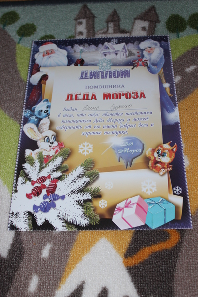 Ну и если хорошо справится с заданием - диплом помощника Дедушки