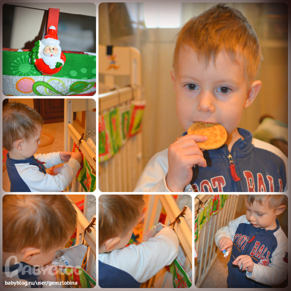 Праздник к нам пришел (Игры в День Рожденья, Новый год, 8 марта и.т.д.. А так же чем занять нескольДо НГ осталось 7 дней и, чтобы было веселее ждать, ДМ каждый день присылает нам нам маленькие сюрпризики: деревянные елочные игрушки и какую-нибудь вкусняшку) А когда ДМ доберется до последнего кармашка, то наступит Новый Год! Святе очень понравились сюрпризики с печеньками и в течение дня он то и дело заглядывал в открытй кармашек: нет ли там чего случайно