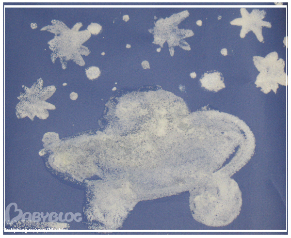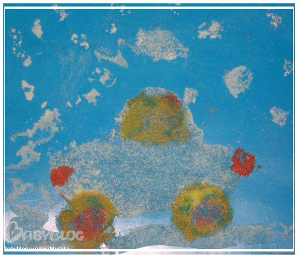 Лера нарисовала машину солью, пыталась раскрасить, но что-то не понравилось, решила так оставить.