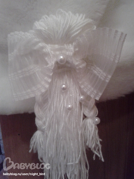 хвост как чубчик из пряжи, украсили бантов отсавшимся от гривы и бусинками, косички плел дедушка, вообще мой папа был со мной напротяжении всей работы..советовал со стороны, вседа дельно