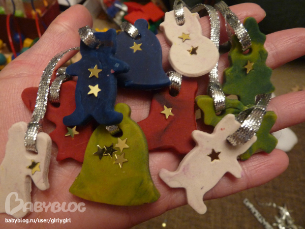 2. подвески на елку из самозатвердевающего play-doh