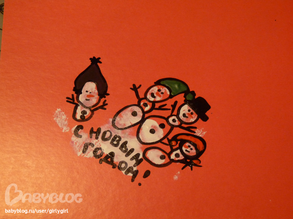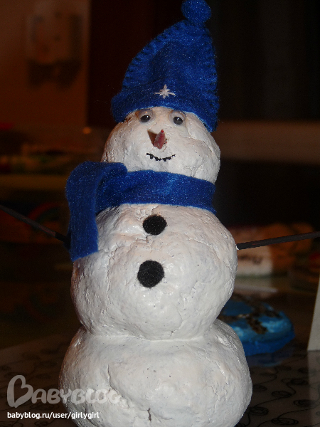 снеговик тоже из соленого теста. Платон катал шары, а уж все остальное, понятно, мама ночами...