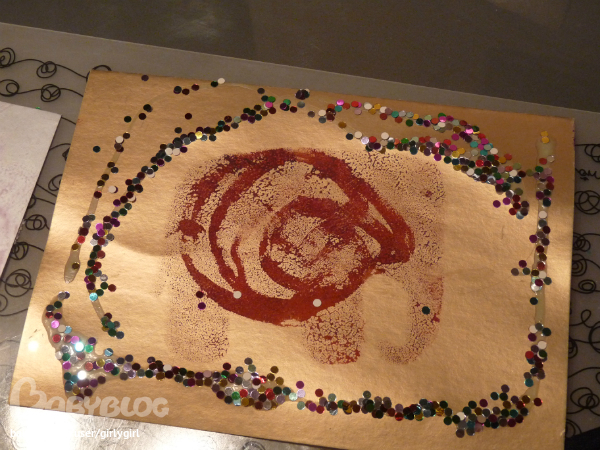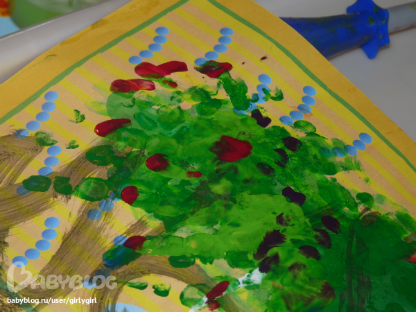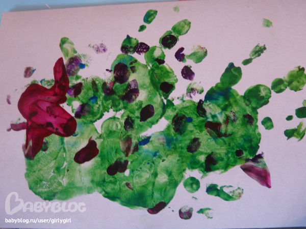 это слон:)) (рисовали губкой через трафарет)