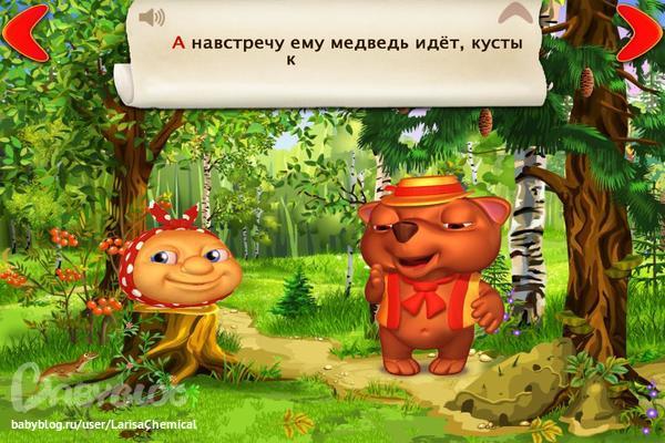 Радует глаз графика, профессиональная озвучка, приятные звуки летнего леса. В приложение даже есть небольшая анимация. Думаю, что Вашему ребенку она понравится.