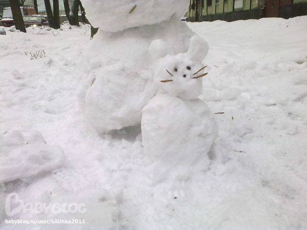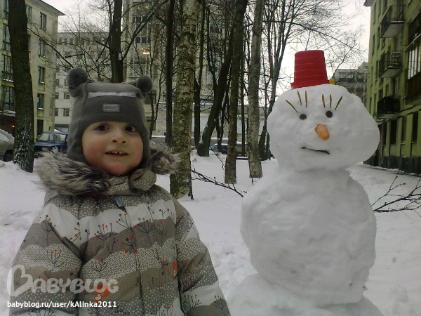 дождались липкой погоды и слепили снеговика!!!! ПЕРВОГО СНЕГОВИКА!!!!
