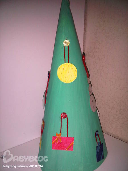 Самодельные игрушкиВот такую елку наспех сделала для дочки,так как малышка начала снимать игрушки с нашей новогодней елочки.