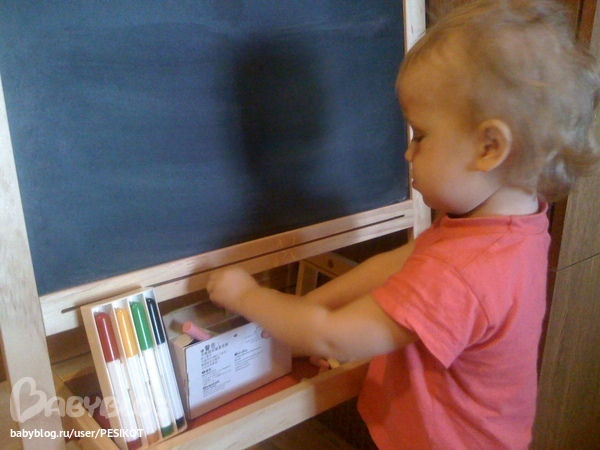 14. Ну и наш любимый Икеевский мольберт. С фломастерами и мелками. Ева от него в восторге, только приходится выдавать фломастеры "под роспись" ибо оттирать их пришлось в первый день с неожиданного места.
