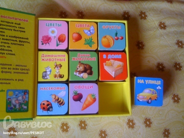 Очень яркая, картон плотный. Каждая картинка состоит из 6ти пазлов. Ева пока не может все собрать, но проявляет явный интерес и стремление. Обычног складываю сама и оставляю ей 1-2 очевидных пазла.