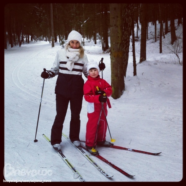 Катались всей семьей (за исключением самых младших) на лыжах. Беговых. Последний раз на беговых лыжах я стояла лет эдак тринадцать назад на уроке физкультуры. Тогда мы сдавали очередной норматив и мне в голову пришла гениальная мысль: срезать пару км какими-то кабаньими тропами. Что я и сделала. Естественно, пришла к финишу с выдающимися показателями. И потом еще долго пряталась за гранитными школьными колоннами от учителя физкультуры, который настойчиво пытался отправить меня на городские соревнования. На этот раз все было по-чесному: от себя своего ребенка не убежишь)