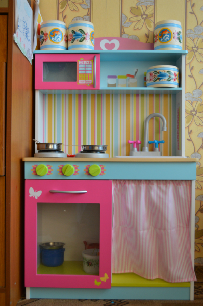 вот в такой коробке мы ее купили,здесь видно фирму,кстати у них есть еще красивые многоэтажные кукольные дома.Цена кухни 2600(была 2500)плюс у меня скидка8% в этом магазине,так что вообще красота!