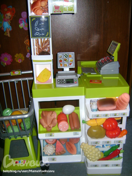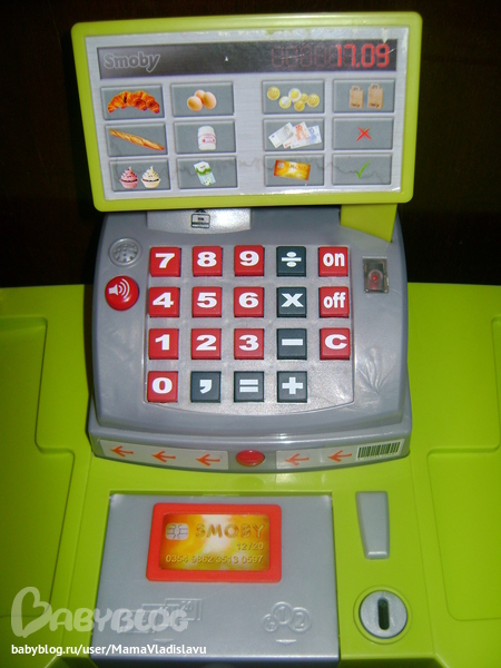 По поводу звуковых и световых эффектов(на кассе можно нажимать кнопки и слышать звуки,если нажать на красную кнопочку слышен звук сканера и мигает красная кнопка)сканера как такового нет,все что пишется на сайтах по поводу якобы считывания кодов с продуктов-этого нет