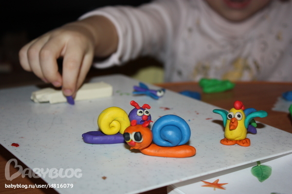 Какие все красивые и яркие!!!! Мы тоже любим лепить, хотя только начинаем и у нас такой красоты не получается, какой вы пластилин используете? у нас есть набор для лепки (папа купил) и он больше подходит для апликаций я так поняла, когда уже начали лепить с сыночком, т.к. зверушки вообще не держатся у нас(