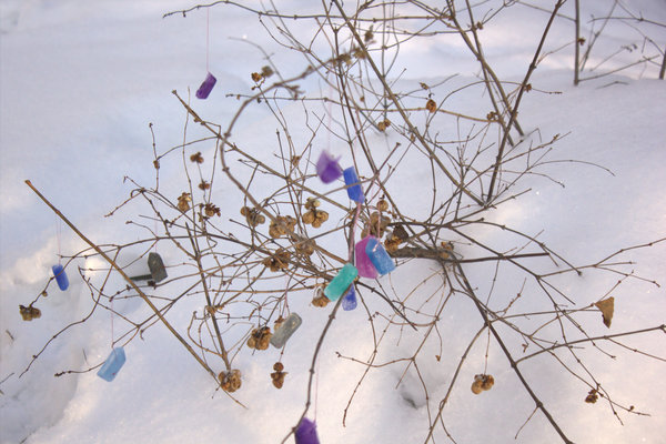 Разное (если затрудняетесь с выбором)Небольшая проблемка у нас - ребенок ни в какую не желает выходить на улицу, говорит, что не любит зиму и снег и будет до весны сидеть дома :) Мне вспомнилась прошлогодняя наша забава, когда мы делали цветной лед и потом на улице украшали этими ледочками кусты.