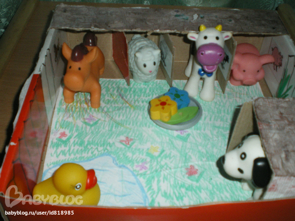 А этим друзьям мы сообща сделали ферму(в основном мама, Варюша активно рисовала лужайку):периодически всех кормим и выгуливаем))