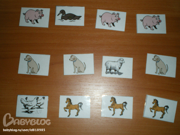 "Кто лишний?"(Бывало- Варюша убирала лишнее животное,а бывало-перемешивала все картинки и отказывалась играть)