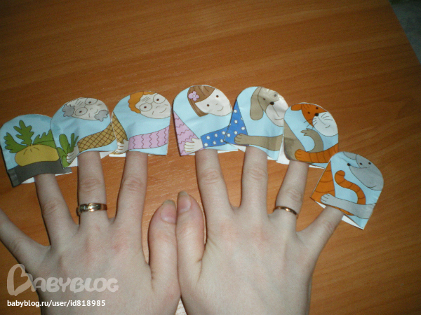 Посмотрели сказку "Репка" в мамином исполнении.Это первый пальчиковый спектакль,который я показывала Варюше .Очень хотела сама поучаствовать.В процессе смеялась, в конце сняла с моих пальцев всех героев и рассматривала-ощупывала))