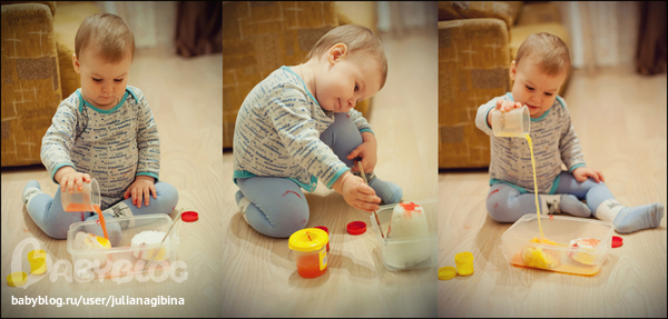 6. Поиграли немножко дома со снегом :))) Порисовали и поэксперементировали. Посмотрели как он тает и окрашивается в разные цвета.