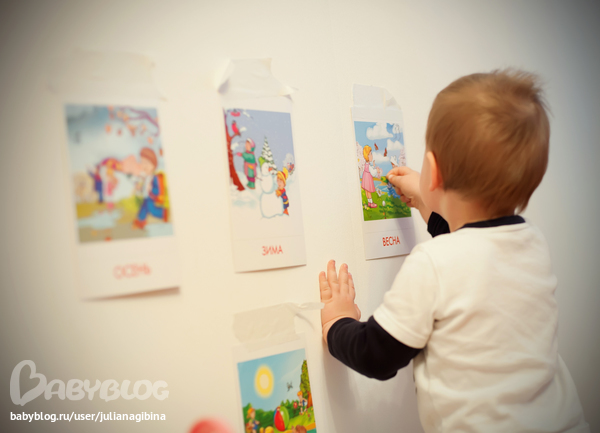 Как результат - Сашулька хорошо отличает Зиму и Лето. С подсказками узнает осень. Ну почему то совсем не хотим запоминать весну. Поэтому думаю весной мы устроим повторение. С уклоном на весенние мотивы :))))