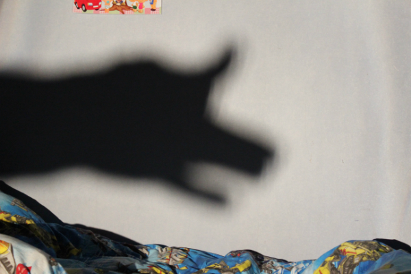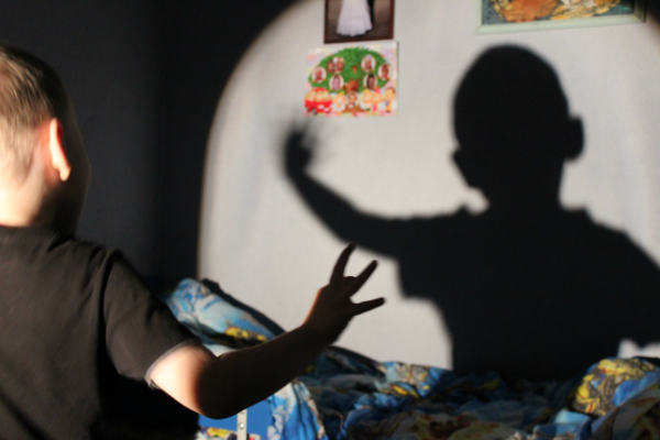 В конце концов забили, вытащили ленту и устроили театр теней :) Что смогли и что вспомнили. А еще выделывались, чтобы смешные тени получались.