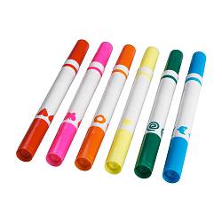у меня такие ИКЕА, думаю в природе полно таких,но эти дешевые и каечственные. Ставить шатмпы не так у ж просто,нужно определить силу нажима и не дергать, в общем тренируем ручки играя)))) Минус- жутко маркие, из них прям течет карска такое ощущение,то есть если дочка прикостенся к стержню ручкой - измазывается пол руки, а может это мы замазурки, на бумагу так краска не вытекает. Штамы - идеальные