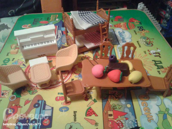 В первую очередь заказывала дешевую кукольную мебель.Там целая серия таких наборов. Есть даже с посудой. Но я решила ограничиться столовой, спальней и гостиной. Каждый наборчик в пределах 80 рублей. По-моему, более чем демократичная цена.