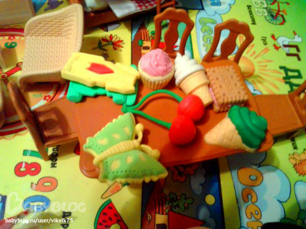 Дальше, для развития моторики (собиралась складывать все в мешочек и на ощупь угадывать предмет), и чтобы кукол кормить заказала на пробу пару наборчиков ластиков по 48 р.