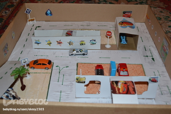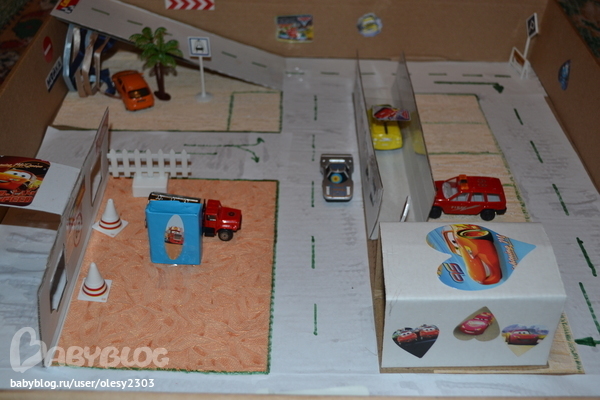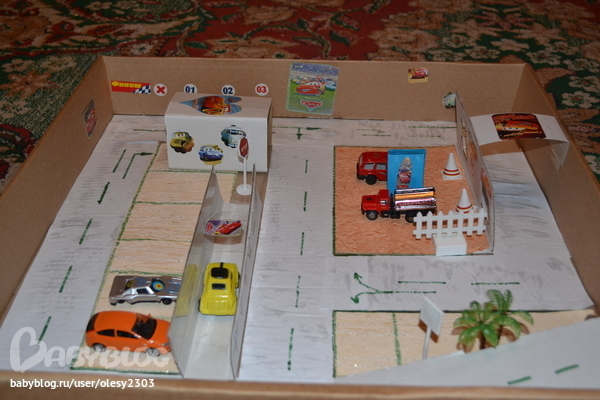 А у нас тоже такая типа коробка, только в нее манку насыпала я, и он там машины, трактора катает , типа по снегу. На долго увлекается)