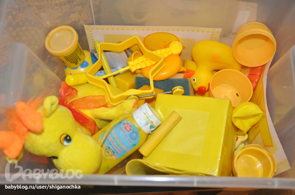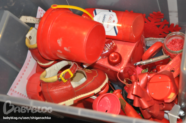 Начинали день с обноружения коробочки со всякими разными предметами одного цвета.