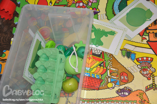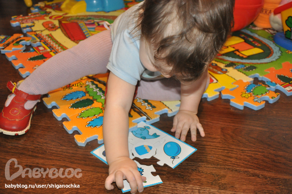 Кстати, пазлы я не смешивала - а давала набор одного цвета в один день и только в последний день смешали и собирали все вместе - т.е. сначала искали нужного цвета и подбирали к нему другие элементы.