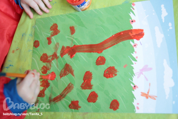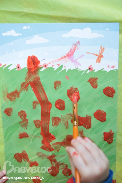 Классно!!! Она у тебя трая точки ставит и убирает кисточку в другое место. а у нас Костька размазывает.