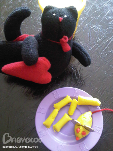 Лепили для котика колбаски и мышку. Ням!