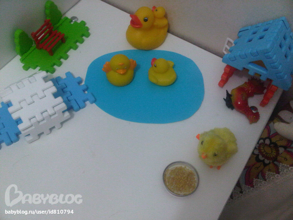 Кормили курочку зерном из пластилина.