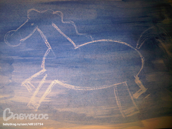 На белом листе нарисовала свечой ...хм :)) лошадь. С дочкой потом раскрашивали. Я впечатлилась,дочка что–то не очень,не поняла фокус.