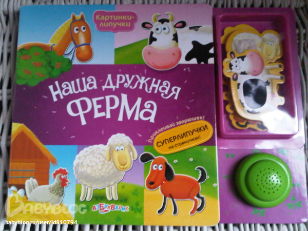 Очень классная. Животные на липучке,тактильные вставки,голоса животных.