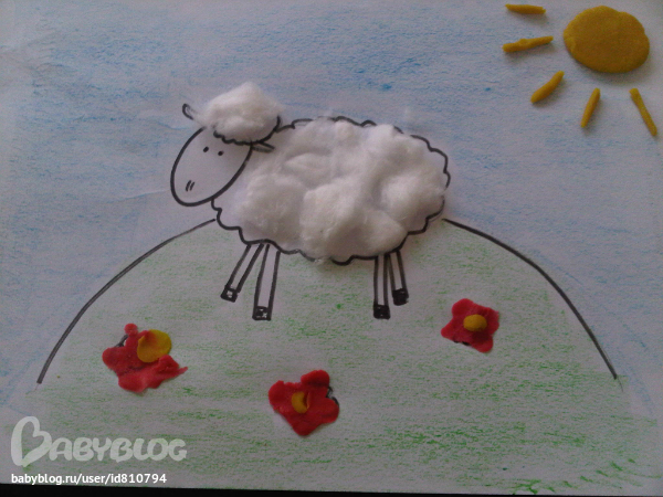 На заготовку клеили вату,лепили солнышко и цветочки.