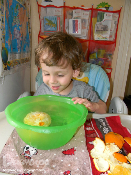 а теперь, давай очистим апельсин и посмотрим что произойдет