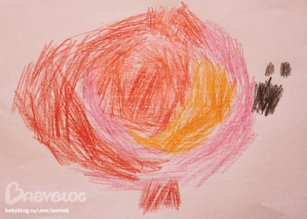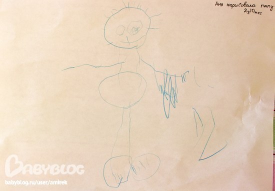Переход от каляк-маляк у нас резко и неожиданно произошел в 2г 10 мес. Вот первый самостоятельный рисунок "Папа" :