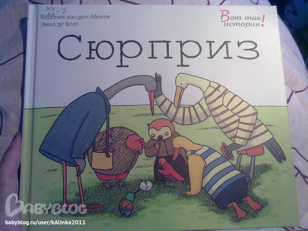 14) СЮРПРИЗ - книжка замечательная, куплю обязательно! Селезень находит яйцо, к нему присоединяется еще много птиц и все спорят, чье оно) вылупляется....КРОКОДИЛ)))) и птицы дружно учат его тому что умеют сами!!! классная книжка, есть что обсудить и над чем поразмышлять)