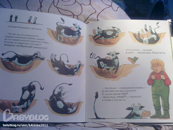 10) ЛИЗЕЛОТТА - прекрасная история! такая смешная! корова работает помощником почтальона и в конце рабочего дня на дне коробки находит "карту"... почитайте! в серии про нее несколько книг, в следующий раз возьму остальные.