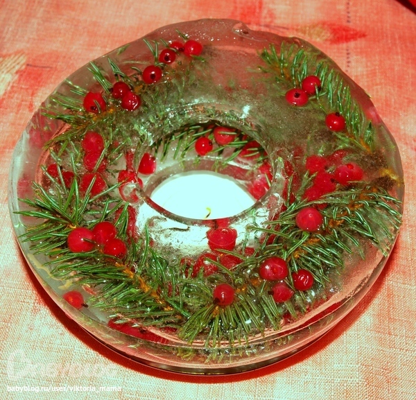 Разное (если затрудняетесь с выбором)Такой подсвечник здорово сделать к новогоднему столу, но и в любое другое время он подарит тепло и уют в доме. Идею взяла здесь .В исполнении очень прост: в глубокую миску на серединку поставить маленькую баночку (я немного заполнила банку водой, чтобы она не всплывала), положить веточки, ягоды, все что угодно в миску и залить водой. Поставить в морозильник и ждать, когда все застынет, вот и все!!! И можно наслаждаться аромат еловых веточек, свечи, и осязать холод и тепло...