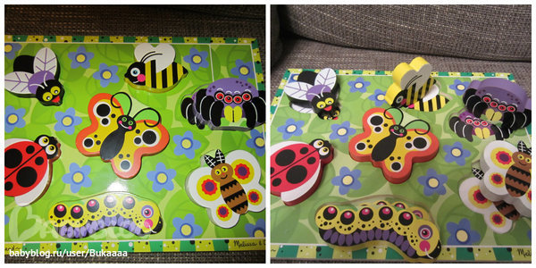 Затем поиграли в самодельное так называемое лото. Я разложила карточки с насекомыми и дочурка называла их и ложила сверху из коробочки букашку.