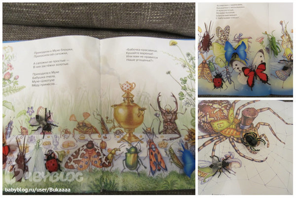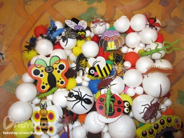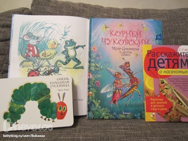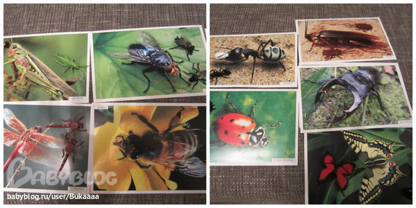 Сначали просто рассматривали картинки и называли знакомых жучков,потом достали нашу коллекцию насекомых и разложили их в книжке.