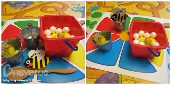Поиграли в игру на моторику,помогали пчелам пыльцу собирать с цветочков,параленьно рассказывала что такое мед,кто его делает и кто его потом очень мюбит кушать))))