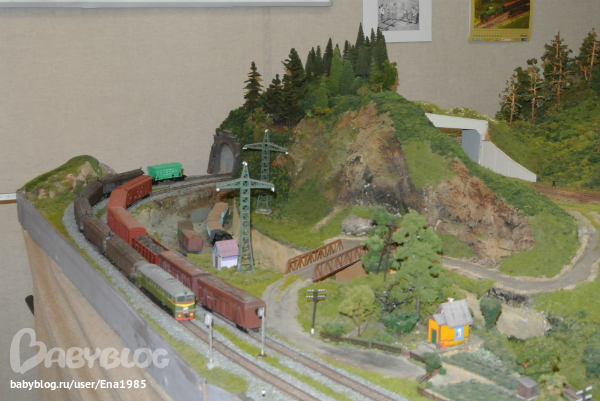 А это уже второй зал, там масштаб покрупнее, цифры не помню, ремонтные работы не закончены, но мы все посмотрели))) и как паровозики в тунель заезжают и выезжают, как по дорого автобус едет и в тоже в туннель...