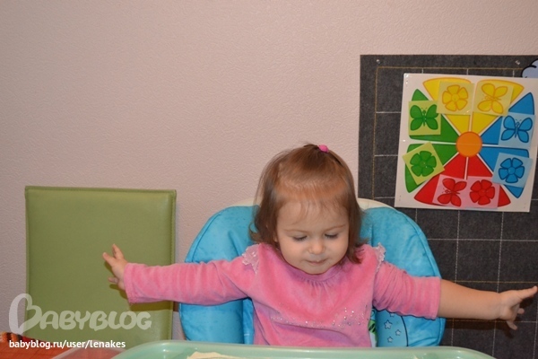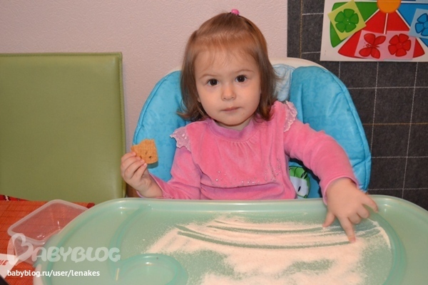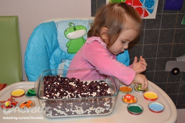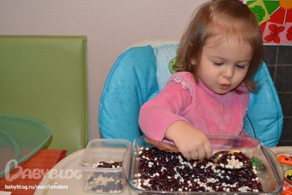 Ну и немного поперекладывали фасоль ложкой. Полностью инициатива ребенка.