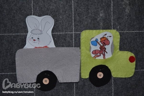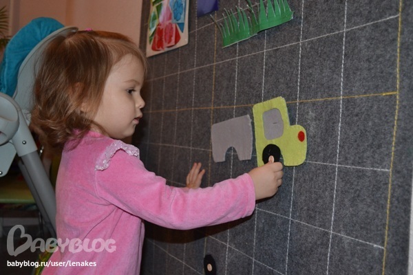 3. Следующим заданием было собрать пазл машинки на коврографе. Не сразу справилась, получается не очень ровно. Будем в течение недели усовершенствовать навыки. Не забыли повторить, что у машины есть кузов, кабина и колеса.