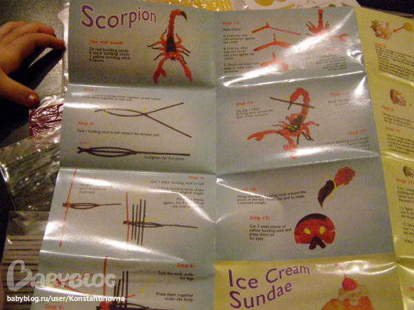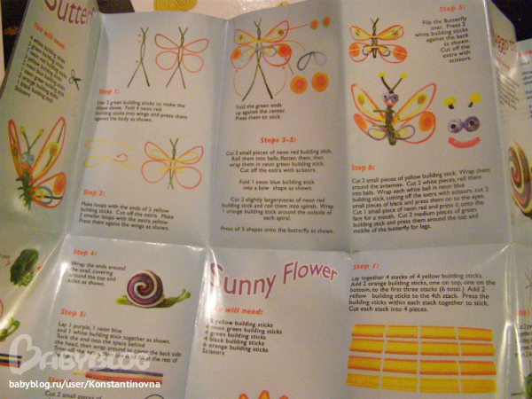500 палочек разных цветов, 10 карточек на плотном картоне по созданию животных и буклет с пошаговой инструкцией еще 20 различных предметов